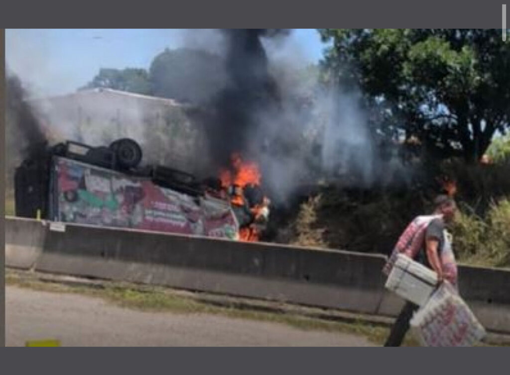 Duas pessoas ficaram feridas após o tombamento de um caminhão que acabou pegando fogo na BR-101, altura do Jardim Catarina, em São Gonçalo, na Região Metropolitana, na manhã desta sexta-feira (21). Devido ao acidente, a via chegou a ficar completamente interditada.