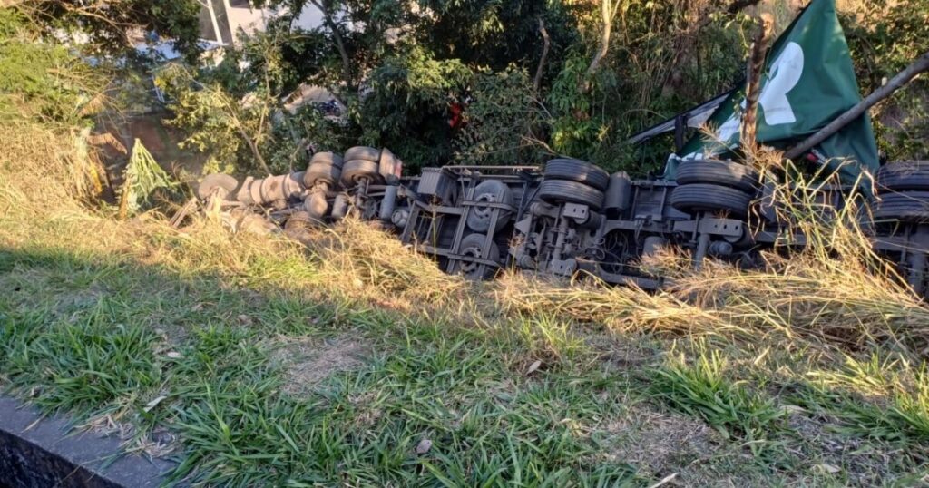 Caminhão com carga de cerveja tomba na BR-393, em Barra do Piraí – Barra Mansa Notícias