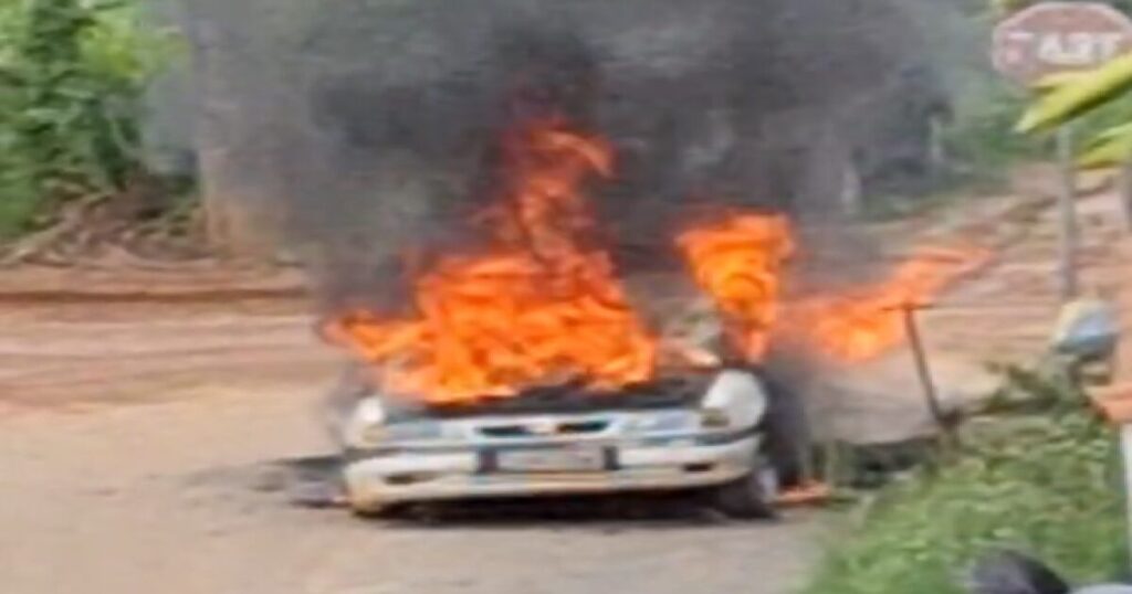 Carro pega fogo em Volta Redonda