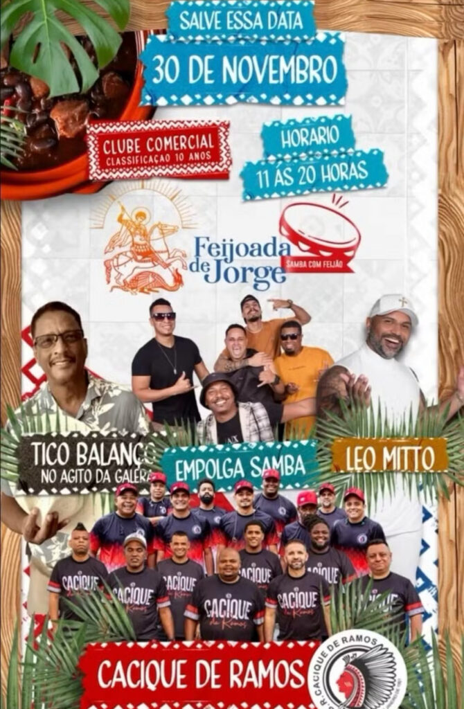 Volta Redonda (RJ) vai receber no dia 30 (domingo) o evento “Feijoada de Jorge”. A festa será no Clube Comercial, das 11h às 20h.