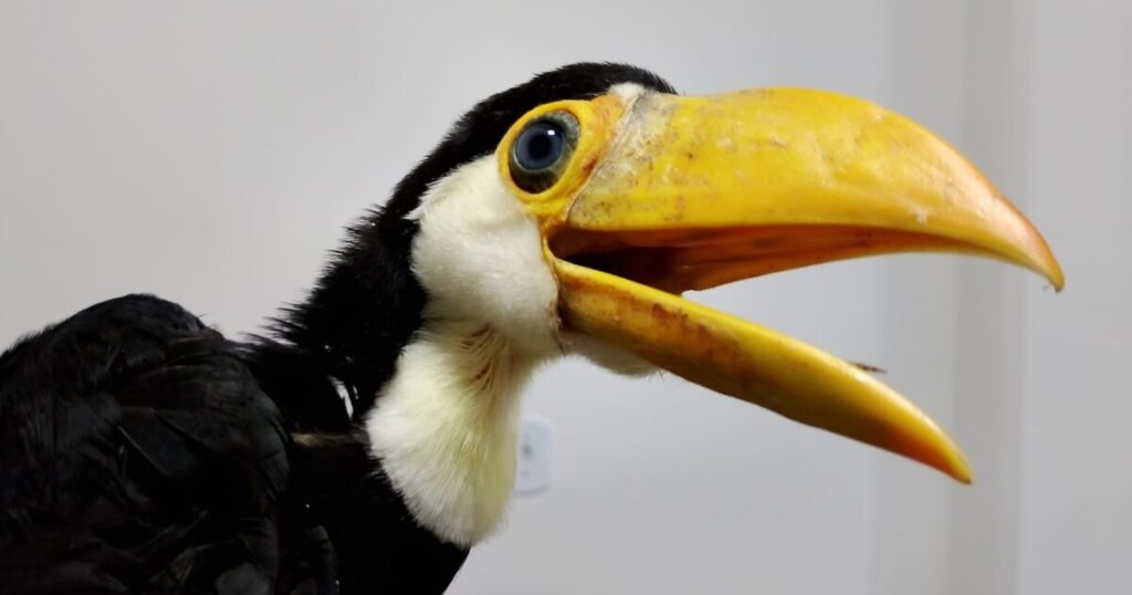 O tucano, ainda muito jovem, foi encaminhado ao Zoológico Municipal de Volta Redonda, onde receberá os cuidados necessários para sua recuperação.