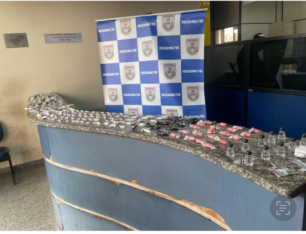 A PM informou ainda que ele estava com um rádio transmissor na mão e, ao ser revistado, foram encontradas drogas dentro de sua mochila.