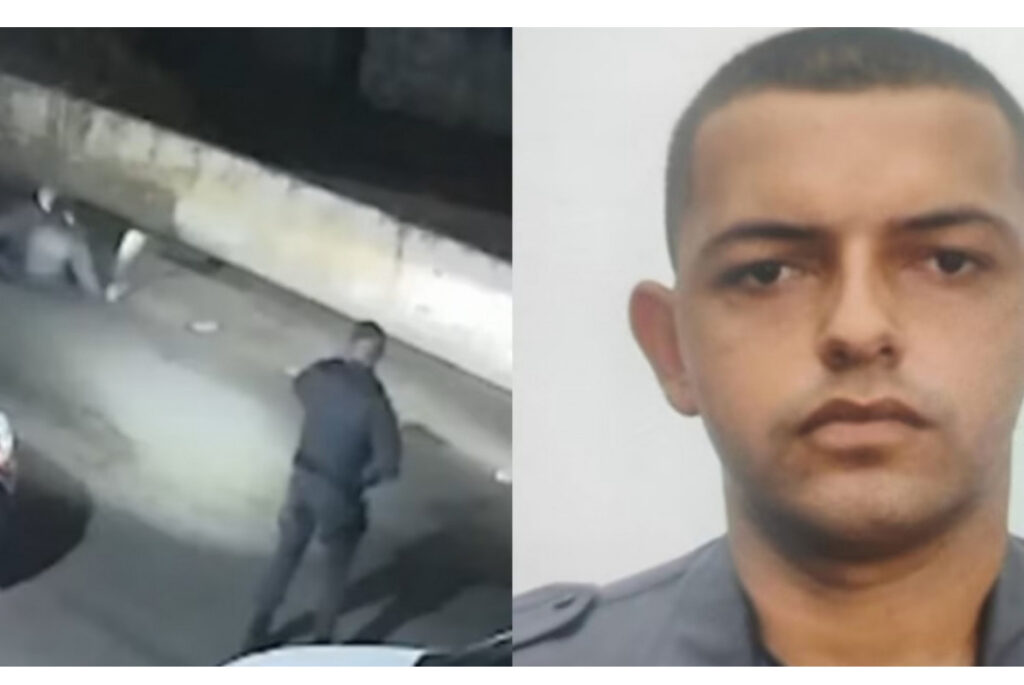 A gravação registra o momento em que o soldado sinaliza para o primeiro veículo parar. Diante da desobediência, o agente tenta interceptar a segunda motocicleta, mas é atingido e cai. Na sequência, a terceira e a quarta moto o atropelam.